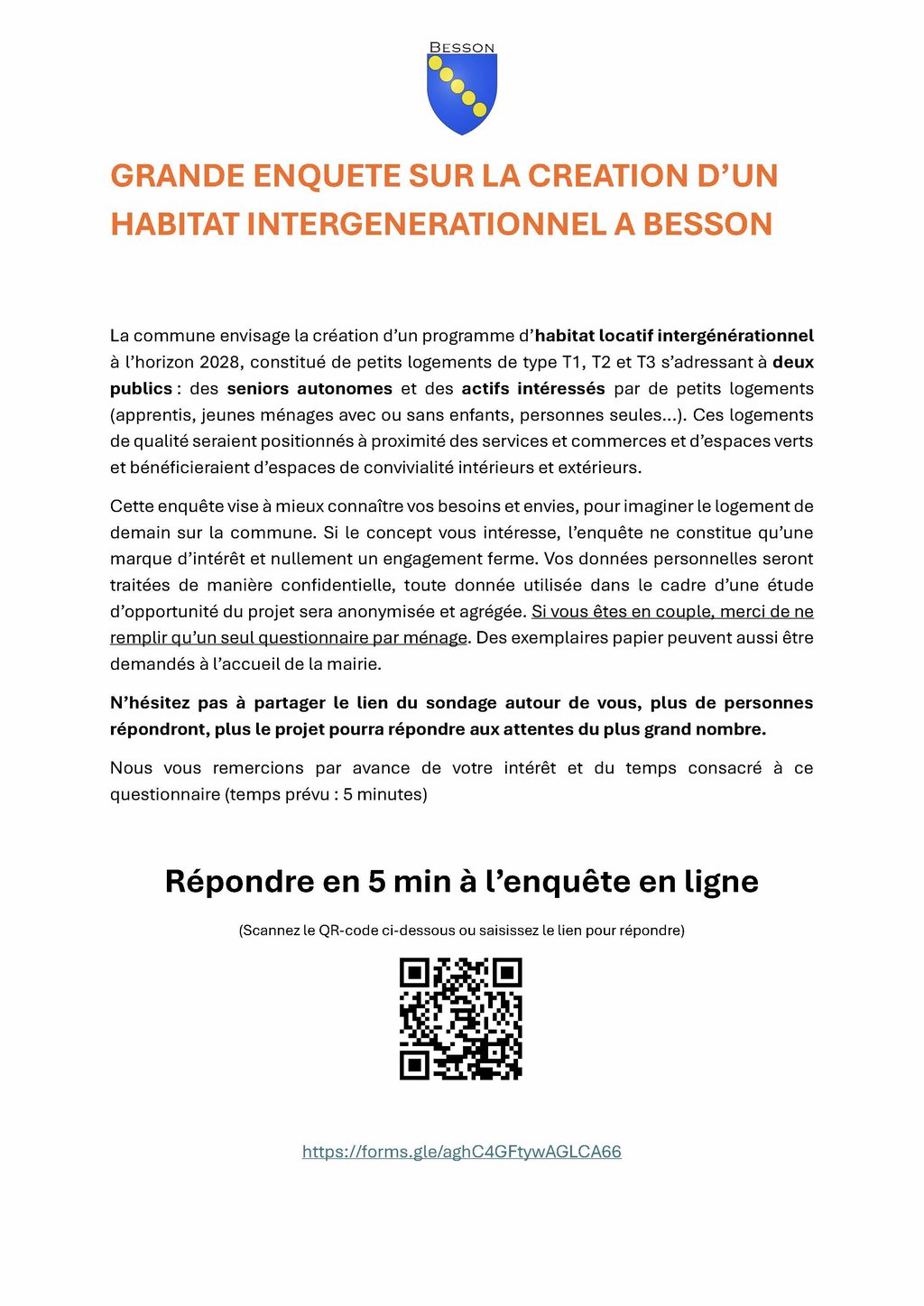 ENQUÊTE SUR LA CRÉATION D'UN HABITAT INTERGÉNÉRATIONNEL À BESSON
